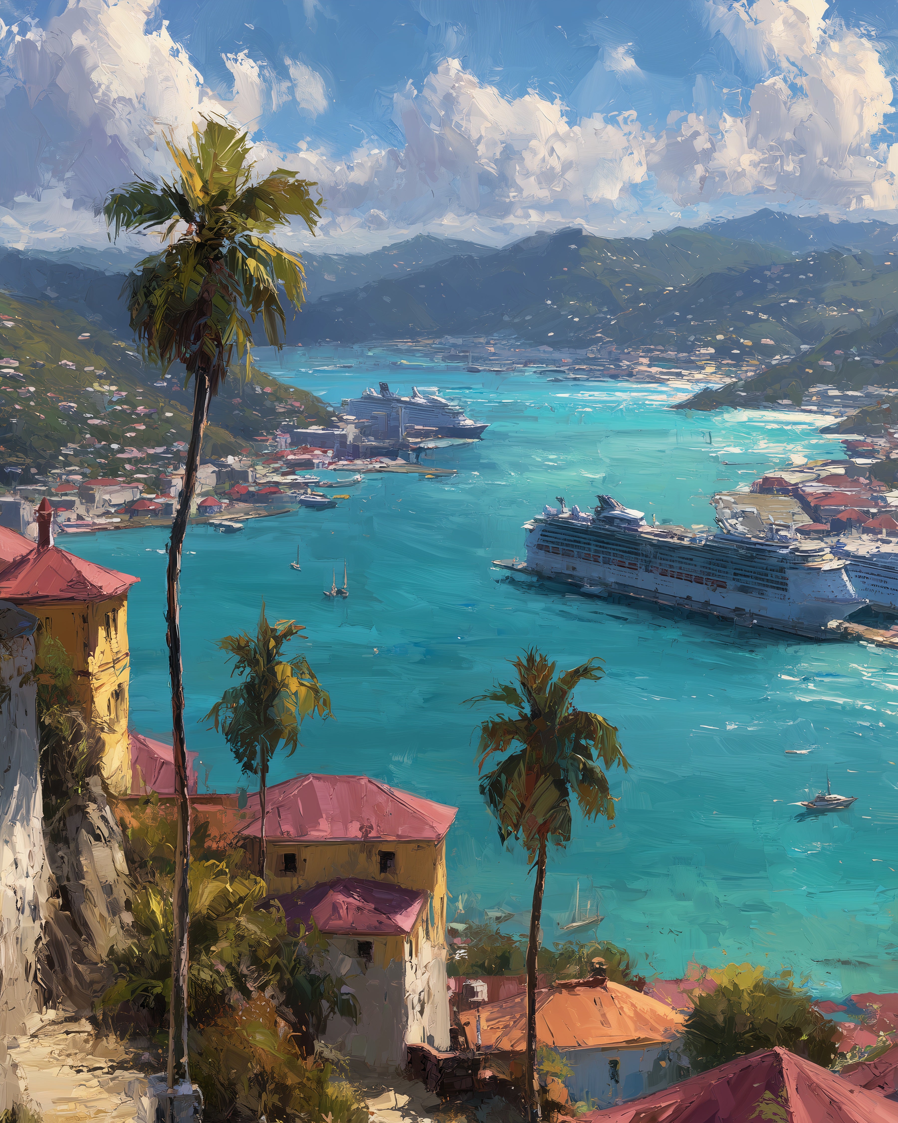 These gallery-quality prints are inspired by real cruise journeys across the Caribbean and Mediterranean — from sun-drenched beaches to historic port towns.