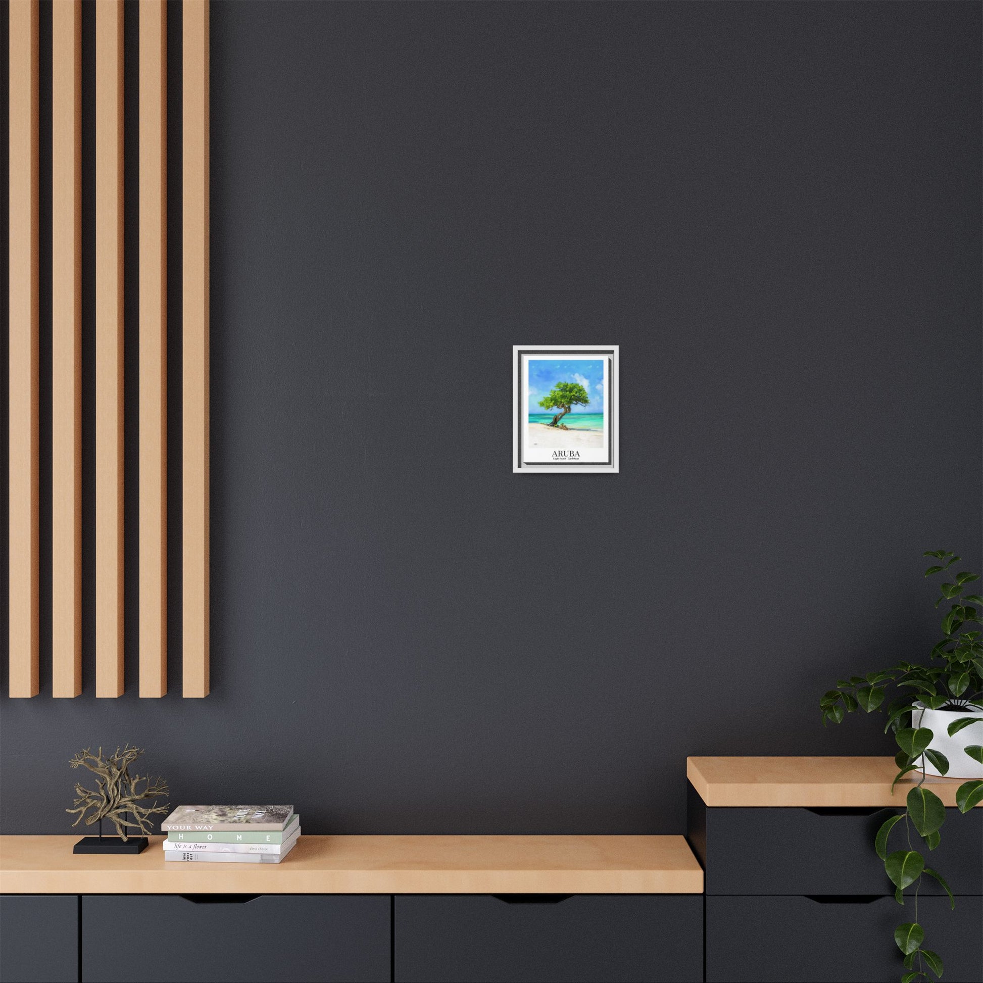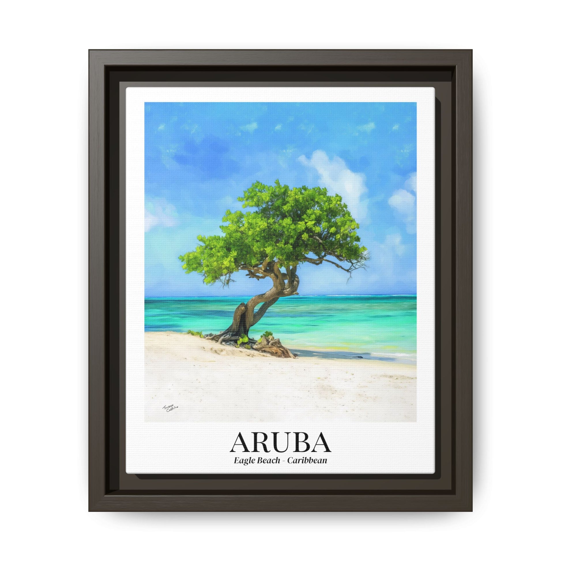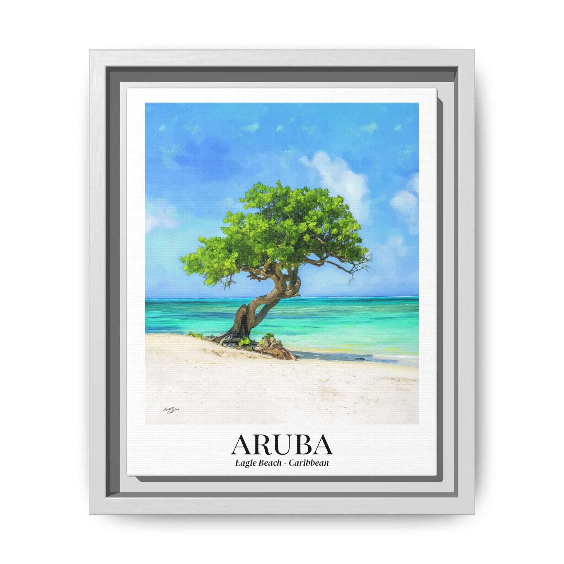 Aruba Framed Canvas Wall Art – Eagle Beach, Fofoti Tree Print, Cruise Ship Vacation Memory, Caribbean Decor, Beach House Gift for Travelers