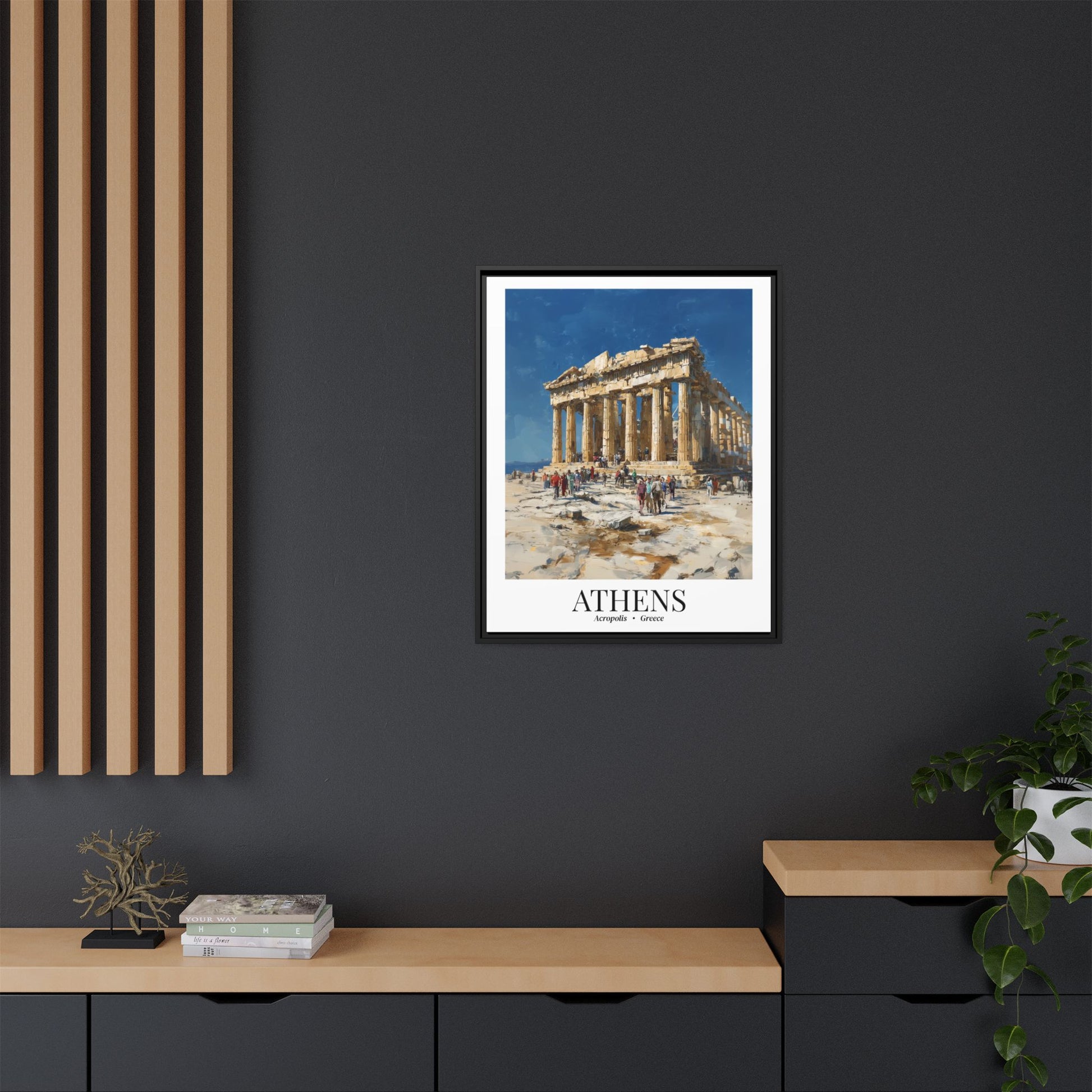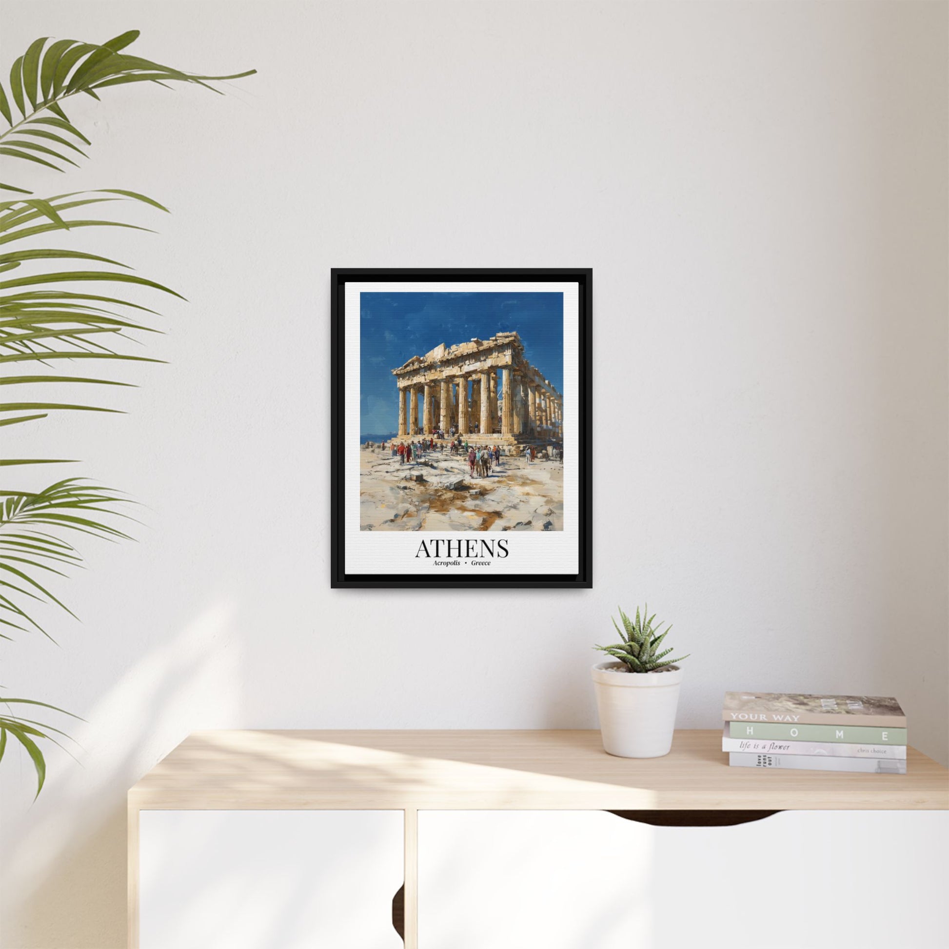 Athens Framed Canvas Wall Art – Fine Art, Parthenon Hill Acropolis Print, Travel Memory, Greece Wall Decor, Nature-Inspired Gift