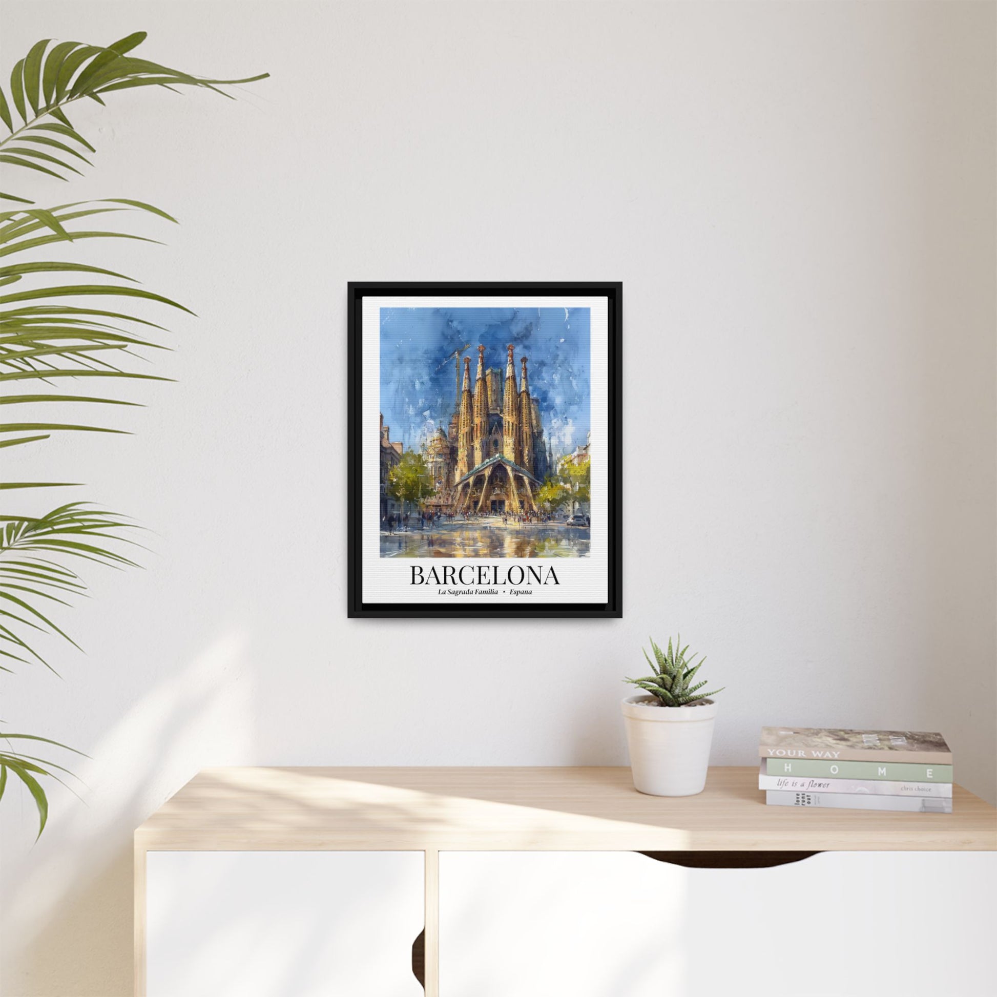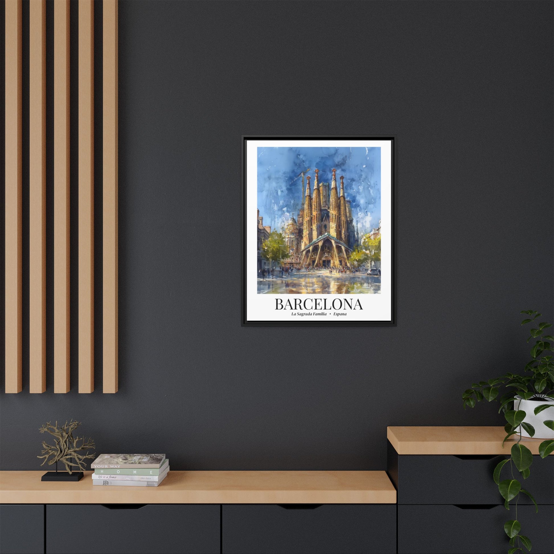 Barcelona Framed Canvas Wall Art – Sagrada Família Cathedral Print, Cruise Port Memory, Spain Travel Decor, Mediterranean Gift for Architecture Lovers