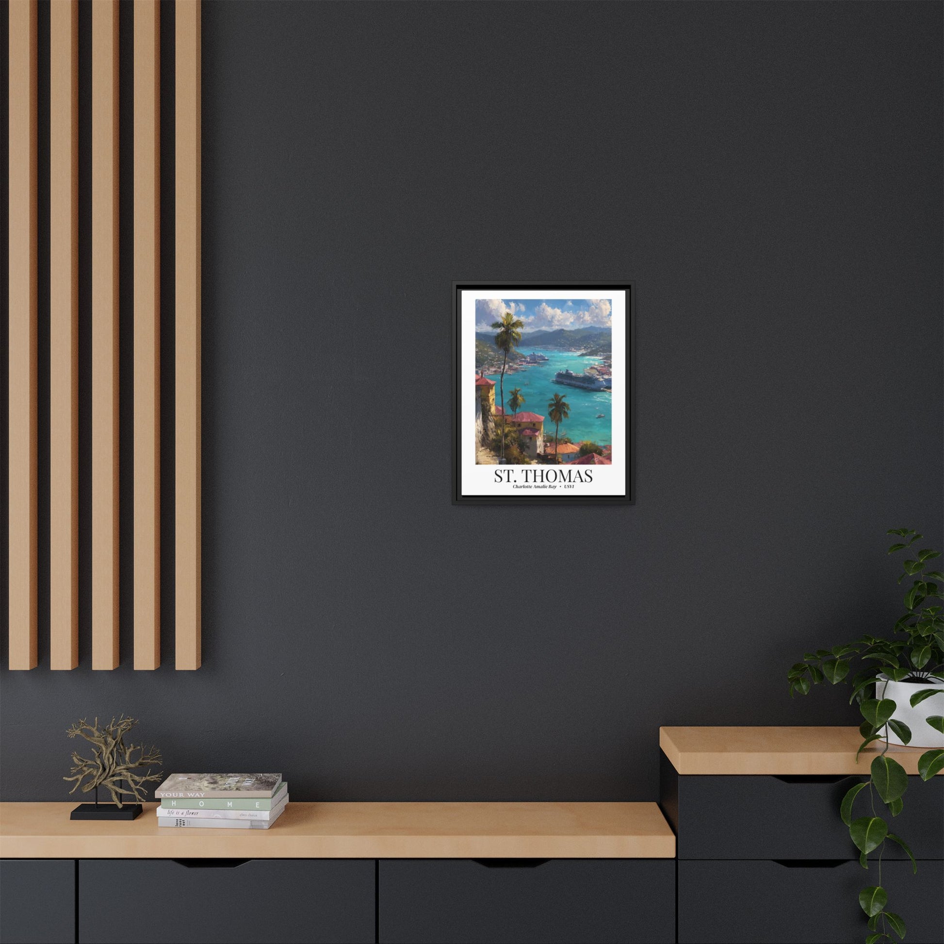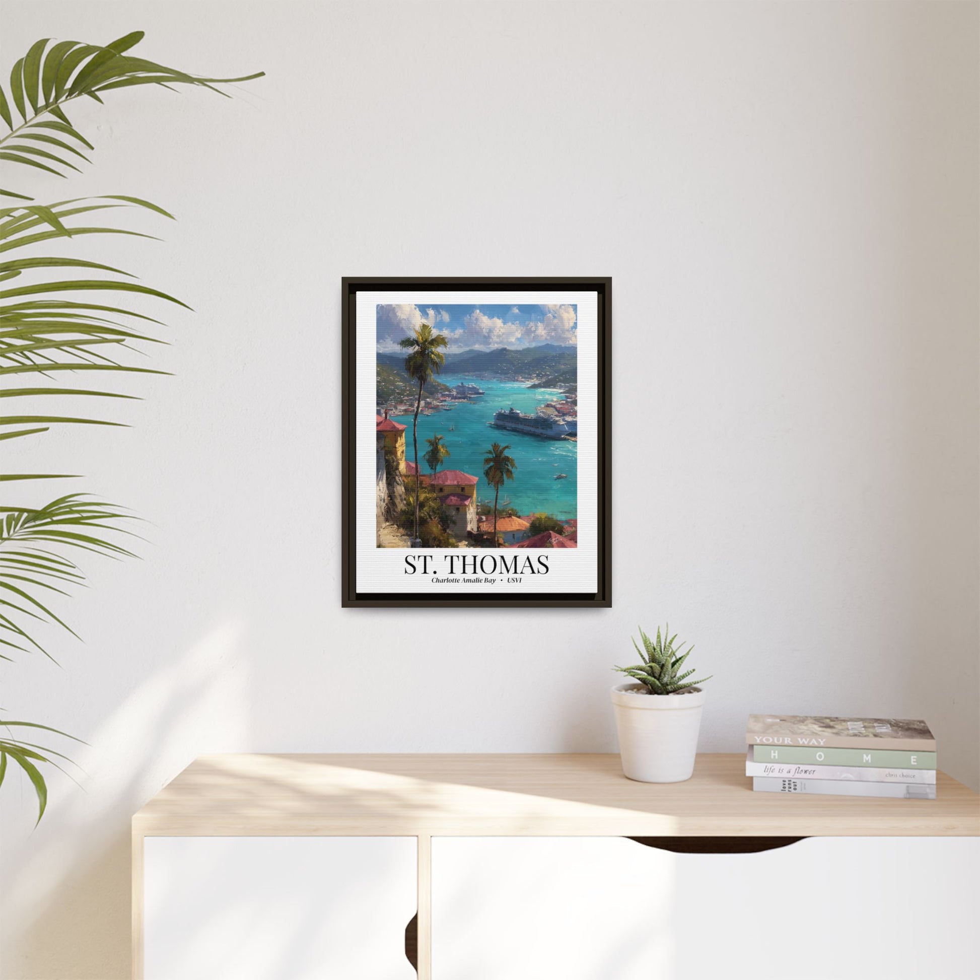 St. Thomas Framed Canvas Wall Art – Fine Art, Charlotte Amalie Bay Print, Travel Memory, Caribbean Wall Decor, Nature-Inspired Gift