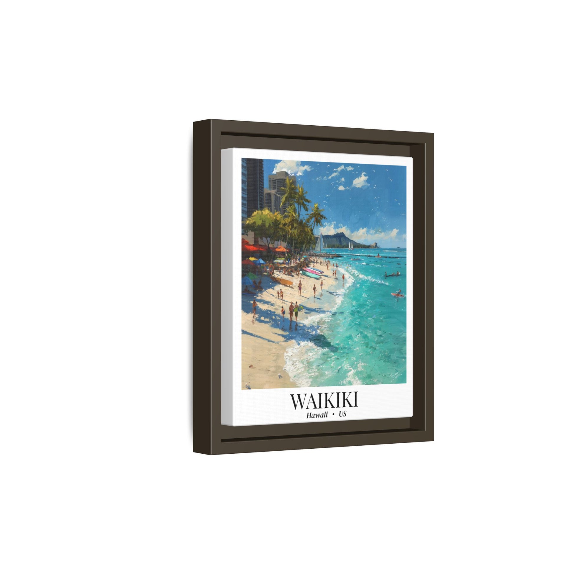 Waikiki Beach Poster Canvas Framed | Tropical Hawaii Wall Art